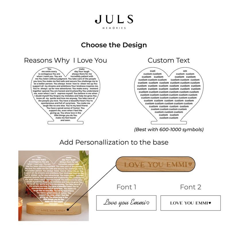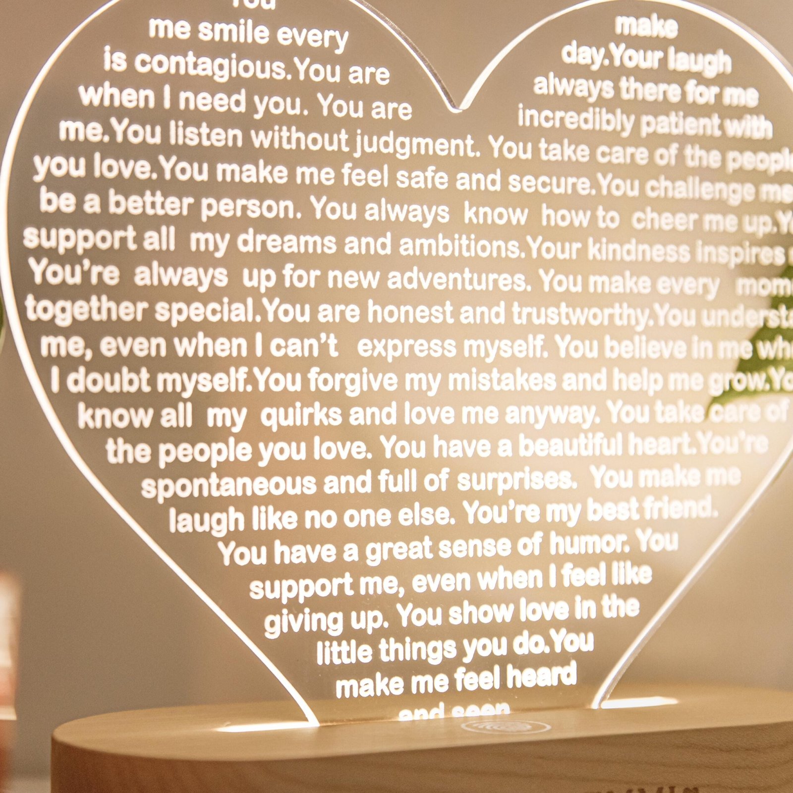 Light up her world with a custom heart night light—a perfect Christmas gift, a thoughtful 30th birthday surprise, a romantic gesture, or a touching anniversary present. Let love shine bright in the form of this personalized night light that symbolizes your deepest affections and conveys your heartfelt emotions in a warm and luminous way. Illuminate her heart and space with a gift that radiates love and togetherness.